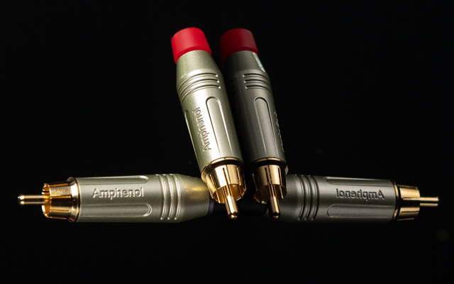 Fémházas, aranyozott érintkezős RCA dugó párban.